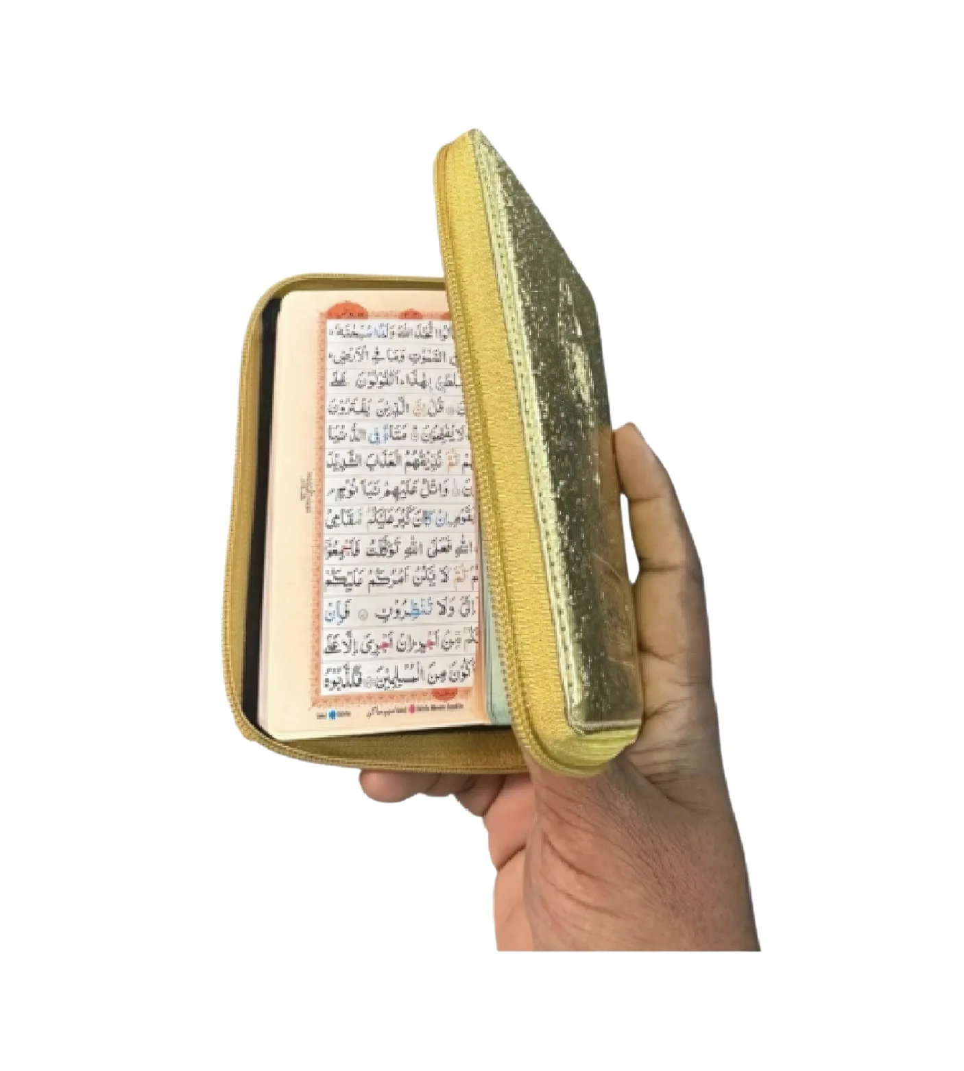 Ref. 147 CC Golden Zip Islamic Book is a beautifully crafted edition designed for those who value both elegance and devotion. Bound with a premium golden zip cover, this book ensures durability while giving a refined and graceful look, making it an ideal choice for personal use or as a thoughtful gift. Its compact size allows easy handling, portability, and safe storage, ensuring that the sacred text remains well-protected. The high-quality printing enhances readability, providing a smooth and enriching reading experience. Whether at home, during travel, or for daily recitation, this edition reflects both spiritual significance and exquisite craftsmanship.